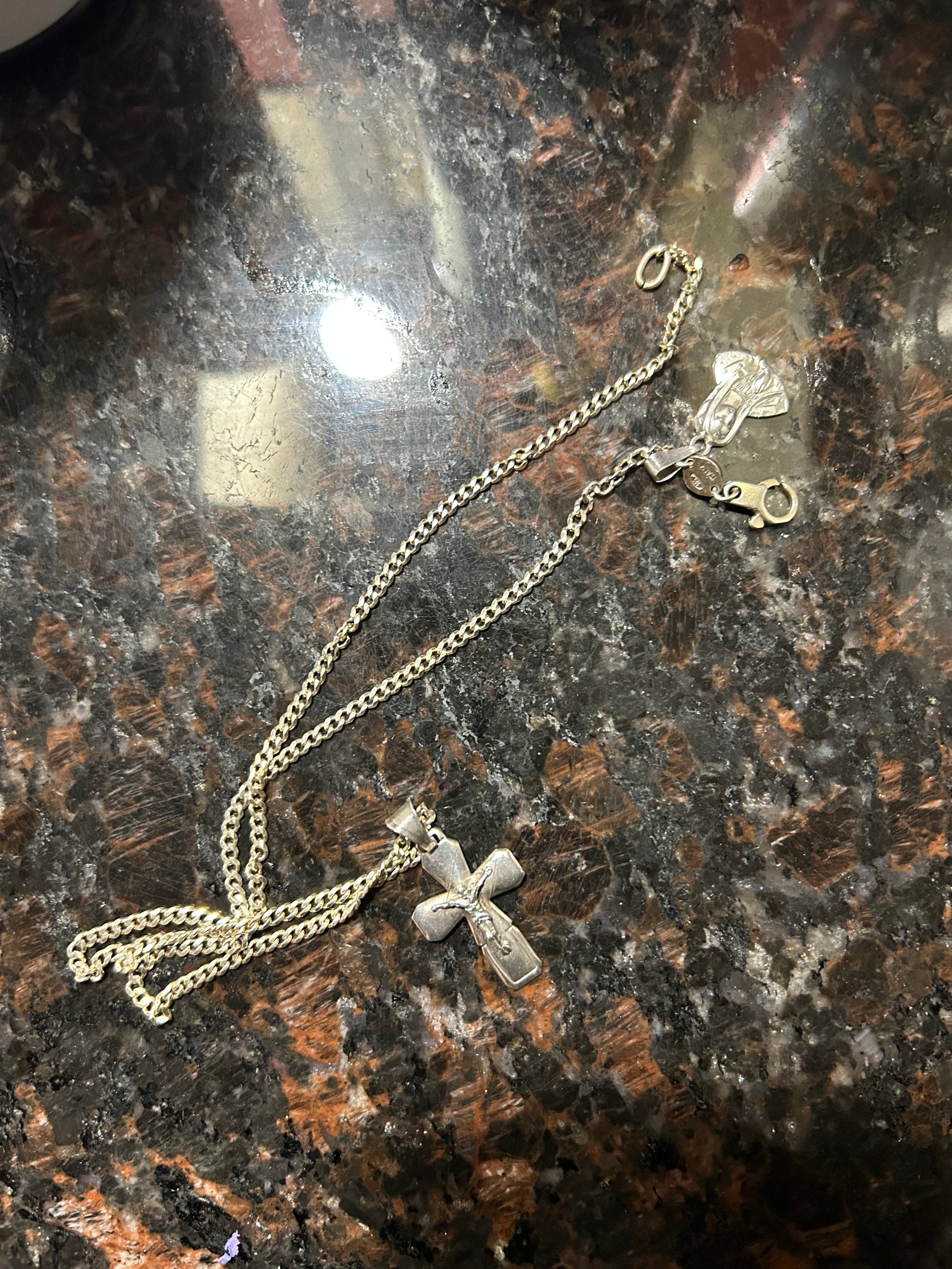 16 inch Cuban link chain. It’s a thin piece but at the same time it’s thick. It stands out and looks very nice